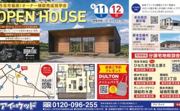 モデルハウス見学会や、アイ-ウッドで実際に注文住宅を建てられたお客様宅の完成見学会など、