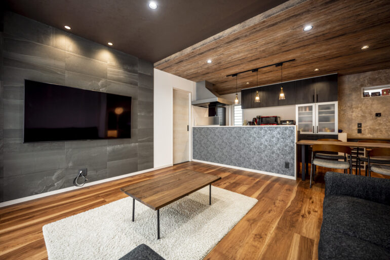 25畳の広大なLDKの中心に鎮座するのは、シックな色合いが美しい憧れのアイランドキッチン。隣接する広いパントリーのおかげで生活感を見せず、いつでもスッキリとした空間を保てます。