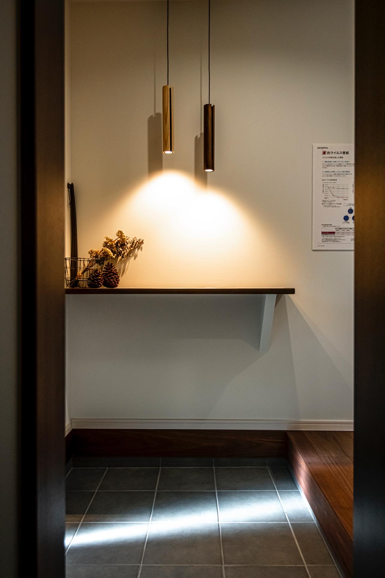 玄関を「ウイルス除菌エリア」とし、住まいにウイルスを持ち込まない提案をします。帰宅すると同時に、どこにも手を触れることなく手洗い・うがいを可能としました。
