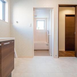 「ウイルス除菌エリア」を出ると、直接洗面・脱衣所に移動し入浴が可能な動線設計としています。