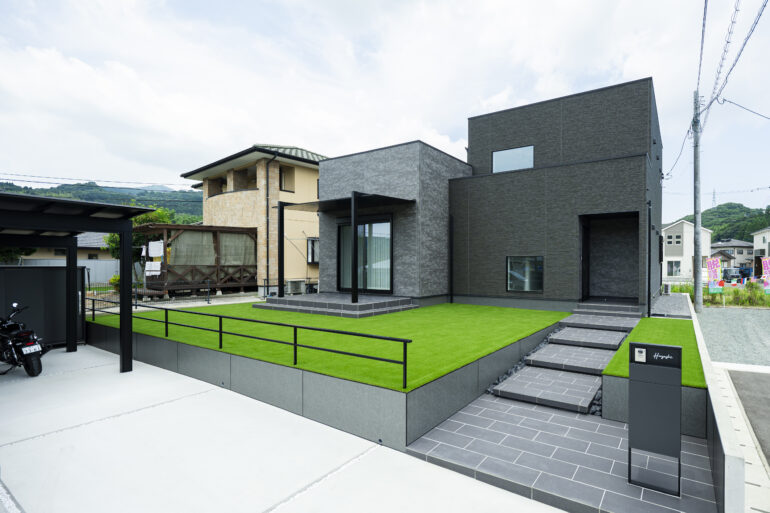 5歳と2歳の元気盛りな男の子が、家やお庭を楽しく駆け回るH様邸。子育て中の家とは思えないほど、ミニマルで洗練された空間が広がっている。